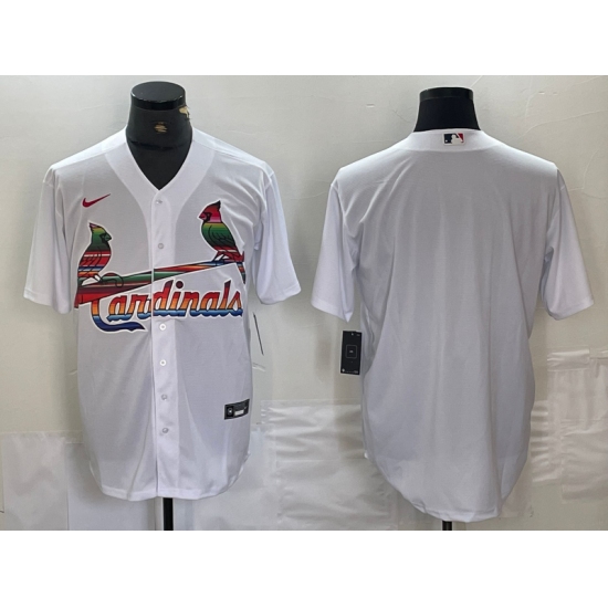 >Men's St Louis Cardinals Blank White Rainbow Stitched MLB Cool Base Nike Jersey