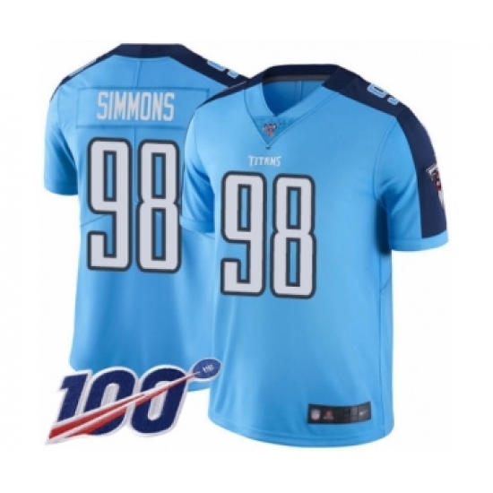 Men's Tennessee Titans #98 Jeffery Simmons Limited Light Blue Rush Vapor Untouchable 100th Season Football Jersey