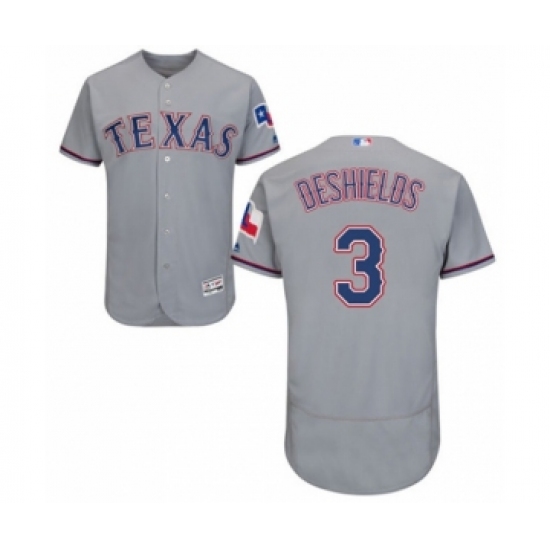 >Men's Texas Rangers #3 Delino DeShields Jr. Grey Road Flex Base Authentic Collection Baseball Player Jersey