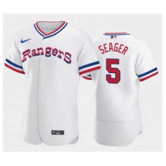 >Men's Texas Rangers #5 Corey Seager White Throwback Stitched Flex Base Nike Jersey