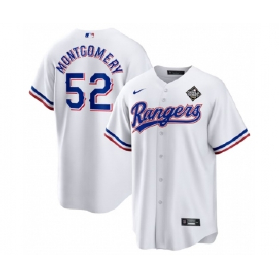 Men's Texas Rangers #52 Jordan Montgomery White 2023 World Series Stitched Baseball Jersey