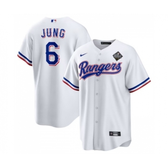 Men's Texas Rangers #6 Josh Jung 2023 White World Series Stitched Baseball Jersey