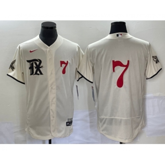 >Men's Texas Rangers #7 Ivan Rodriguez Number Cream 2023 City Connect Flex Base Stitched Baseball Jersey