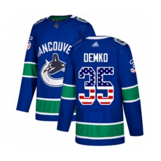 Men's Vancouver Canucks #35 Thatcher Demko Authentic Blue USA Flag Fashion Hockey Jersey