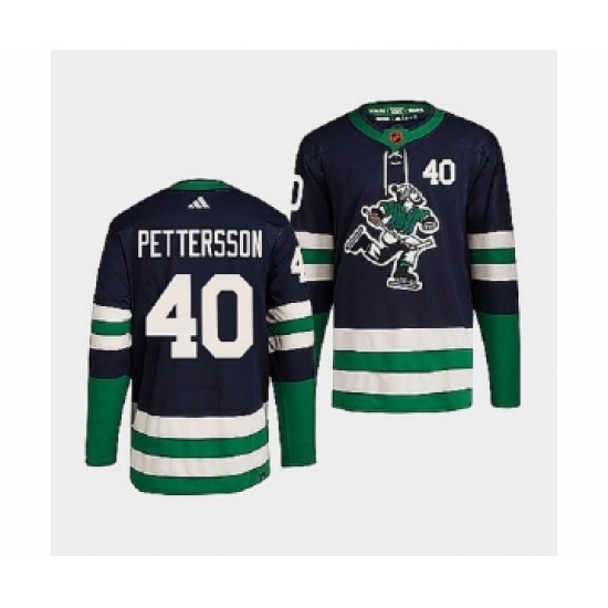 Men's Vancouver Canucks #40 Elias Pettersson Navy 2022 Reverse Retro Stitched Jersey