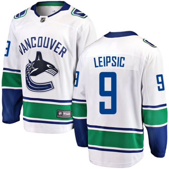 Men's Vancouver Canucks #9 Brendan Leipsic Fanatics Branded White Away Breakaway NHL Jersey