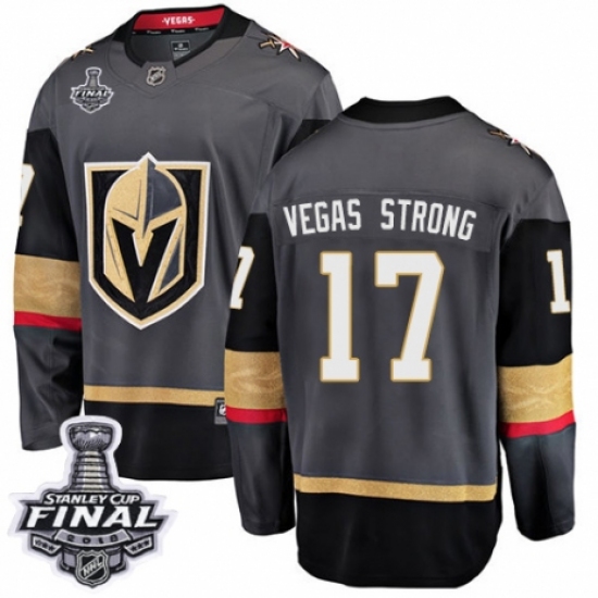 Men's Vegas Golden Knights #17 Vegas Strong Authentic Black Home Fanatics Branded Breakaway 2018 Stanley Cup Final NHL Jersey