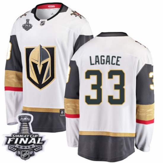 Men's Vegas Golden Knights #33 Maxime Lagace Authentic White Away Fanatics Branded Breakaway 2018 Stanley Cup Final NHL Jersey
