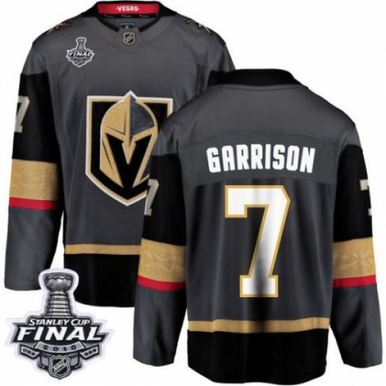>Men's Vegas Golden Knights #7 Jason Garrison Authentic Black Home Fanatics Branded Breakaway 2018 Stanley Cup Final NHL Jersey
