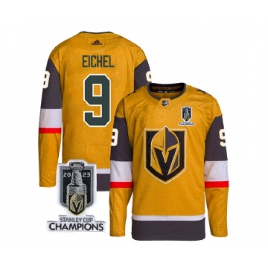 Men's Vegas Golden Knights #9 Jack Eichel Gold 2023 Stanley Cup Champions Stitched Jersey