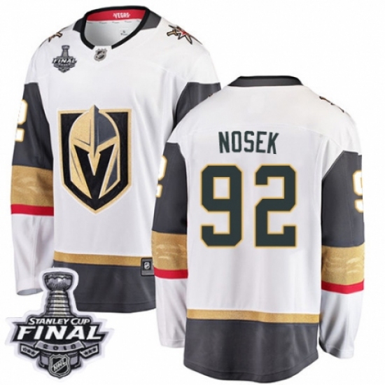 Men's Vegas Golden Knights #92 Tomas Nosek Authentic White Away Fanatics Branded Breakaway 2018 Stanley Cup Final NHL Jersey