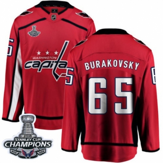 Men's Washington Capitals #65 Andre Burakovsky Fanatics Branded Red Home Breakaway 2018 Stanley Cup Final Champions NHL Jersey