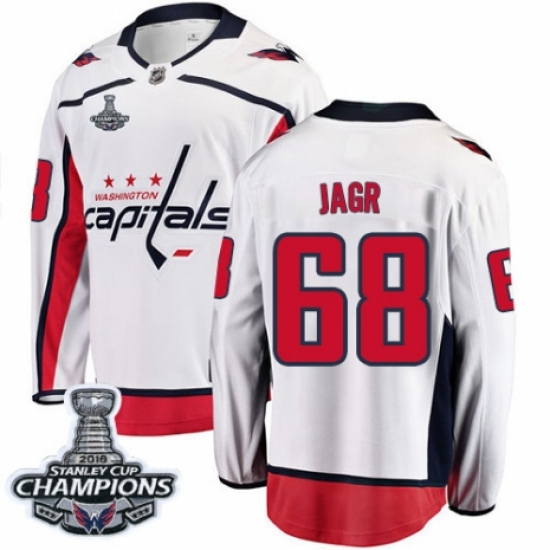 Men's Washington Capitals #68 Jaromir Jagr Fanatics Branded White Away Breakaway 2018 Stanley Cup Final Champions NHL Jersey