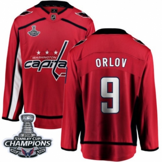 >Men's Washington Capitals #9 Dmitry Orlov Fanatics Branded Red Home Breakaway 2018 Stanley Cup Final Champions NHL Jersey