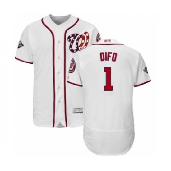 Men's Washington Nationals #1 Wilmer Difo White Home Flex Base Authentic Collection 2019 World Series Bound Baseball Jersey