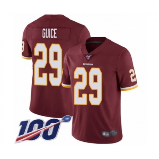 Men's Washington Redskins #29 Derrius Guice Burgundy Red Team Color Vapor Untouchable Limited Player 100th Season Football Jersey