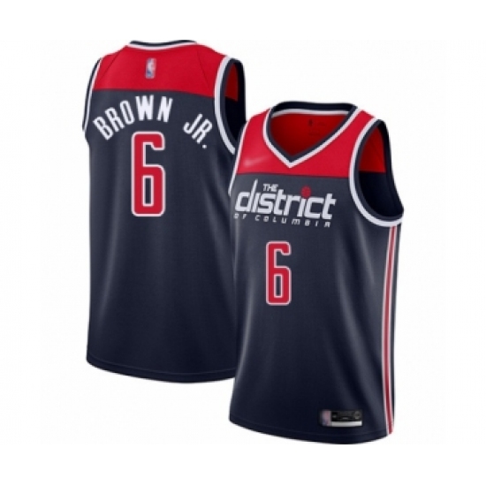>Men's Washington Wizards #6 Troy Brown Jr. Authentic Navy Blue Finished Basketball Jersey - Statement Edition
