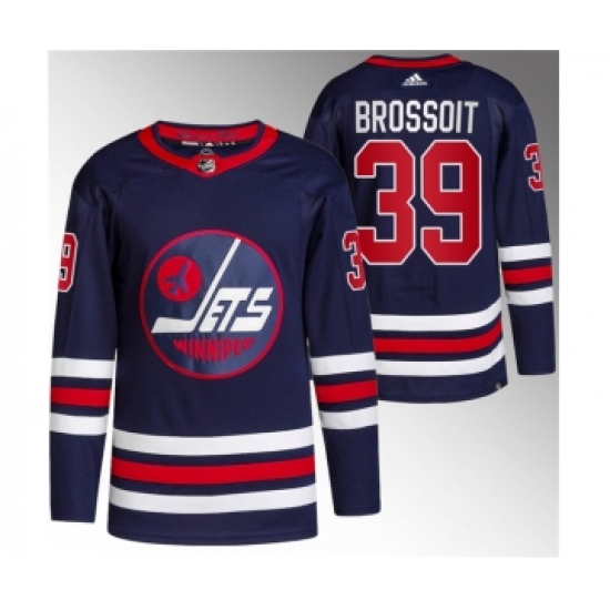 Men's Winnipeg Jets #39 Laurent Brossoit 2021-22 Navy Stitched Jersey