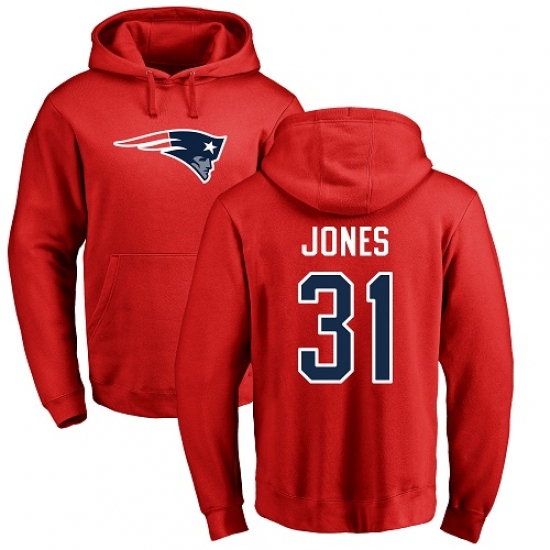 NFL Nike New England Patriots #31 Jonathan Jones Red Name & Number Logo Pullover Hoodie