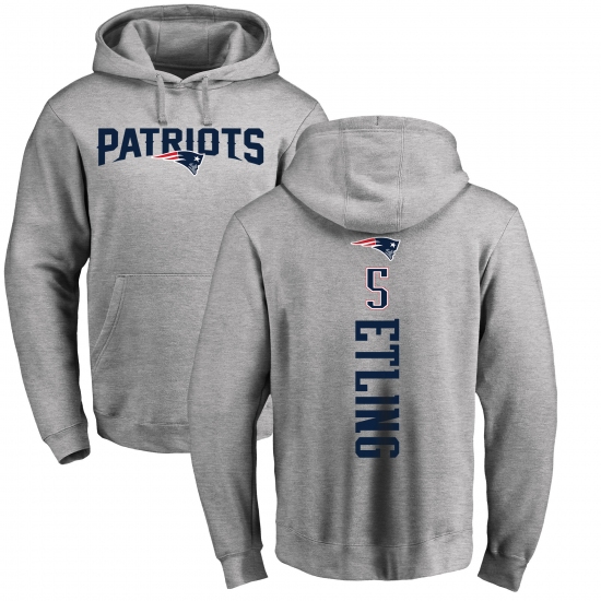 >NFL Nike New England Patriots #5 Danny Etling Ash Backer Pullover Hoodie