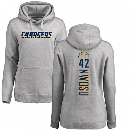 >NFL Women's Nike Los Angeles Chargers #42 Uchenna Nwosu Ash Backer Pullover Hoodie