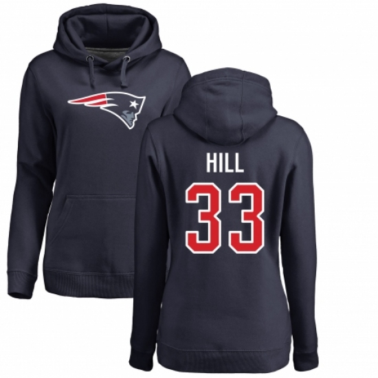>NFL Women's Nike New England Patriots #33 Jeremy Hill Navy Blue Name & Number Logo Pullover Hoodie