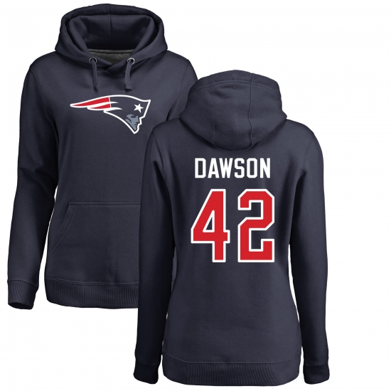 >NFL Women's Nike New England Patriots #42 Duke Dawson Navy Blue Name & Number Logo Pullover Hoodie