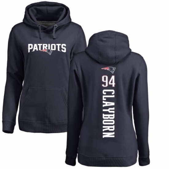 >NFL Women's Nike New England Patriots #94 Adrian Clayborn Navy Blue Backer Pullover Hoodie