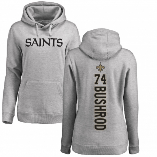 >NFL Women's Nike New Orleans Saints #74 Jermon Bushrod Ash Backer Pullover Hoodie