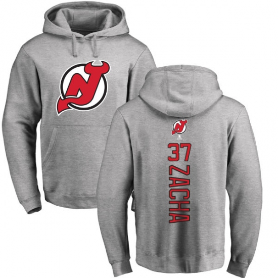 >NHL Adidas New Jersey Devils #37 Pavel Zacha Ash Backer Pullover Hoodie