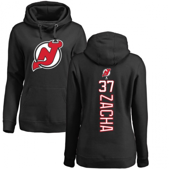 >NHL Women's Adidas New Jersey Devils #37 Pavel Zacha Black Backer Pullover Hoodie