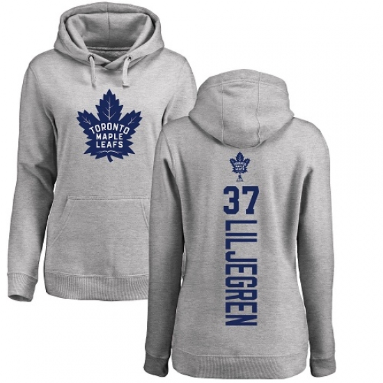 >NHL Women's Adidas Toronto Maple Leafs #37 Timothy Liljegren Ash Backer Pullover Hoodie