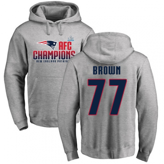 >Nike New England Patriots #77 Trent Brown Heather Gray 2017 AFC Champions Pullover Hoodie