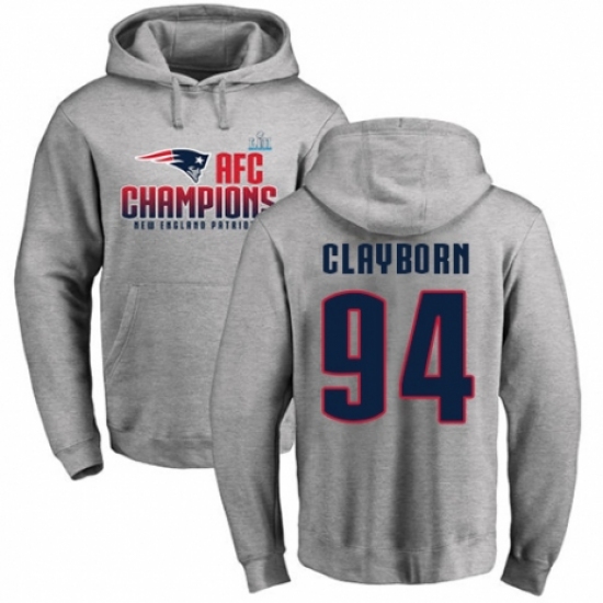 >Nike New England Patriots #94 Adrian Clayborn Heather Gray 2017 AFC Champions Pullover Hoodie
