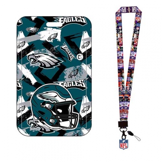 >Philadelphia eagles ID Stickers Badge Holder with Lanyard, Hard Plastic Key Card Work Badge Sleeve for Office, School, Factory, ID Credit Cards,