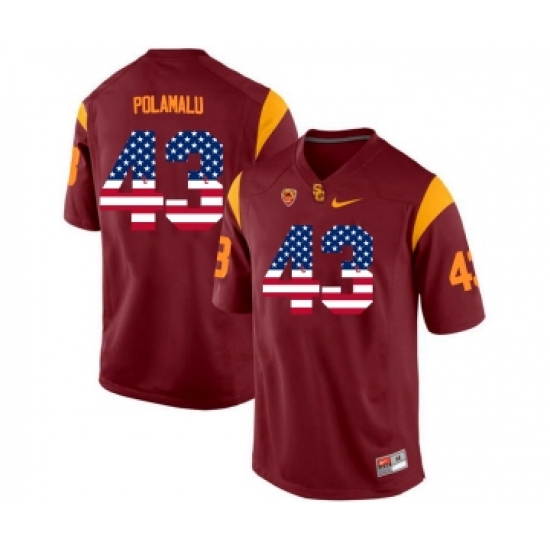 USC Trojans 43 Troy Polamalu Red USA Flag College Football Jersey