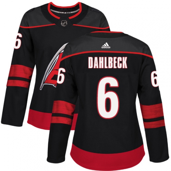 >Women's Adidas Carolina Hurricanes #6 Klas Dahlbeck Authentic Black Alternate NHL Jersey