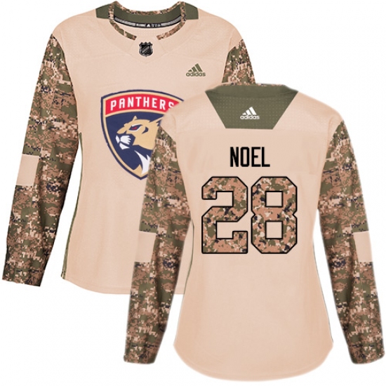>Women's Adidas Florida Panthers #28 Serron Noel Authentic Camo Veterans Day Practice NHL Jersey