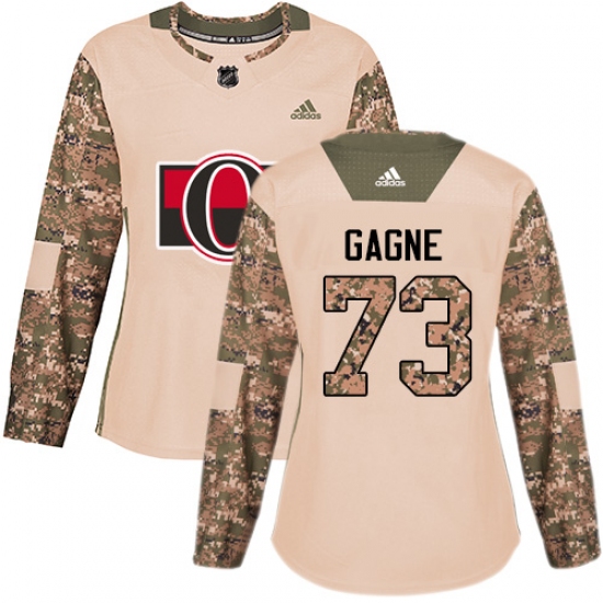 >Women's Adidas Ottawa Senators #73 Gabriel Gagne Authentic Camo Veterans Day Practice NHL Jersey