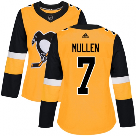Women's Adidas Pittsburgh Penguins #7 Joe Mullen Authentic Gold Alternate NHL Jersey