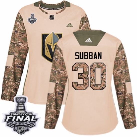 Women's Adidas Vegas Golden Knights #30 Malcolm Subban Authentic Camo Veterans Day Practice 2018 Stanley Cup Final NHL Jersey