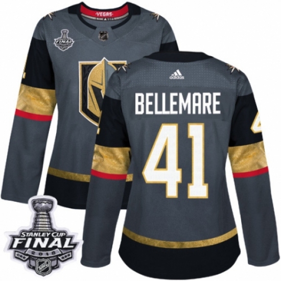 Women's Adidas Vegas Golden Knights #41 Pierre-Edouard Bellemare Authentic Gray Home 2018 Stanley Cup Final NHL Jersey