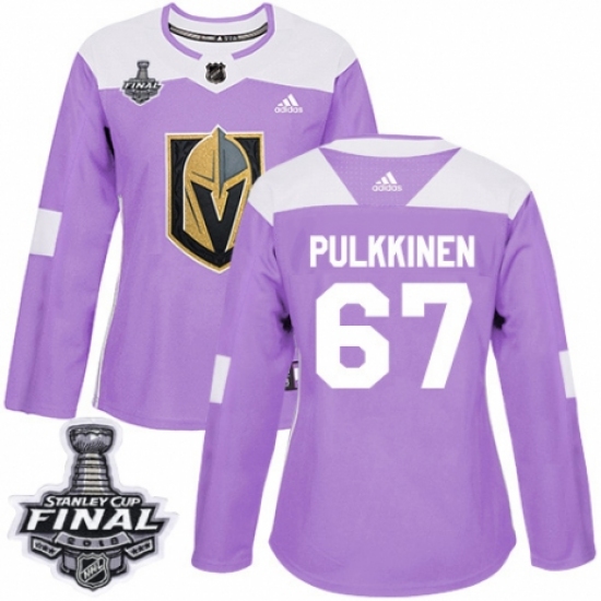 >Women's Adidas Vegas Golden Knights #67 Teemu Pulkkinen Authentic Purple Fights Cancer Practice 2018 Stanley Cup Final NHL Jersey