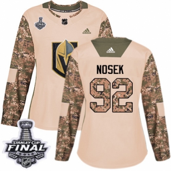 Women's Adidas Vegas Golden Knights #92 Tomas Nosek Authentic Camo Veterans Day Practice 2018 Stanley Cup Final NHL Jersey