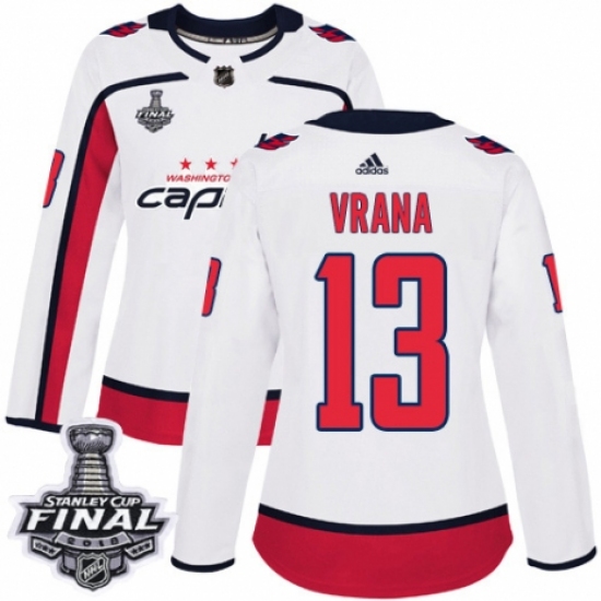 Women's Adidas Washington Capitals #13 Jakub Vrana Authentic White Away 2018 Stanley Cup Final NHL Jersey