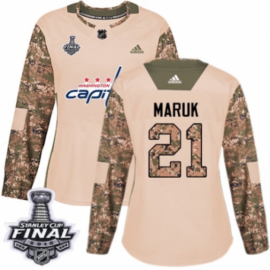 >Women's Adidas Washington Capitals #21 Dennis Maruk Authentic Camo Veterans Day Practice 2018 Stanley Cup Final NHL Jersey