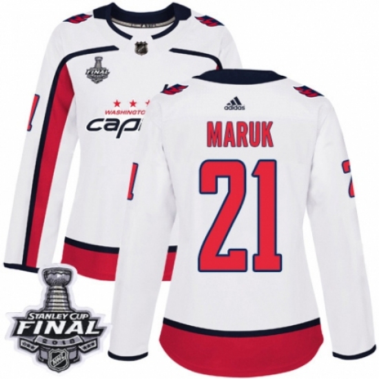 Women's Adidas Washington Capitals #21 Dennis Maruk Authentic White Away 2018 Stanley Cup Final NHL Jersey