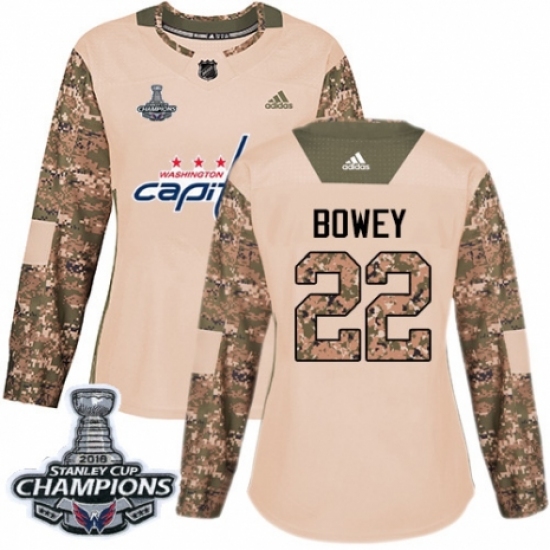 Women's Adidas Washington Capitals #22 Madison Bowey Authentic Camo Veterans Day Practice 2018 Stanley Cup Final Champions NHL Jersey