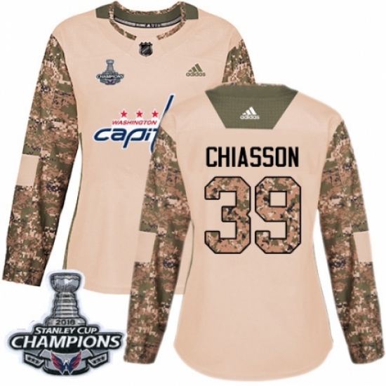 Women's Adidas Washington Capitals #39 Alex Chiasson Authentic Camo Veterans Day Practice 2018 Stanley Cup Final Champions NHL Jersey