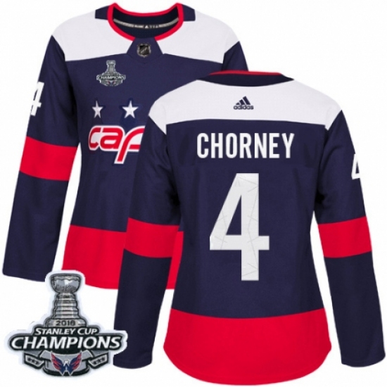 Women's Adidas Washington Capitals #4 Taylor Chorney Authentic Navy Blue 2018 Stadium Series 2018 Stanley Cup Final Champions NHL Jersey